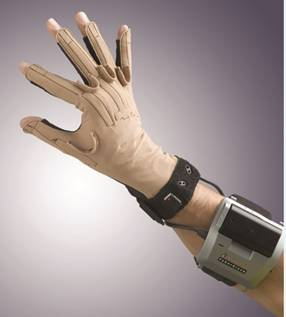 - Polhemus,InterSense公司提供的3D跟蹤裝置。他們提供Cyber??Glove運動捕捉數(shù)據(jù)手套系統(tǒng)絕對X,Y和z,偏航,變槳,輥的位置和方向信息。一個完整的跟蹤系統(tǒng)包括一個發(fā)射器,一個接收器,一個系統(tǒng)電子單元(RS-232串行端口),一個電源和一個串行電纜。